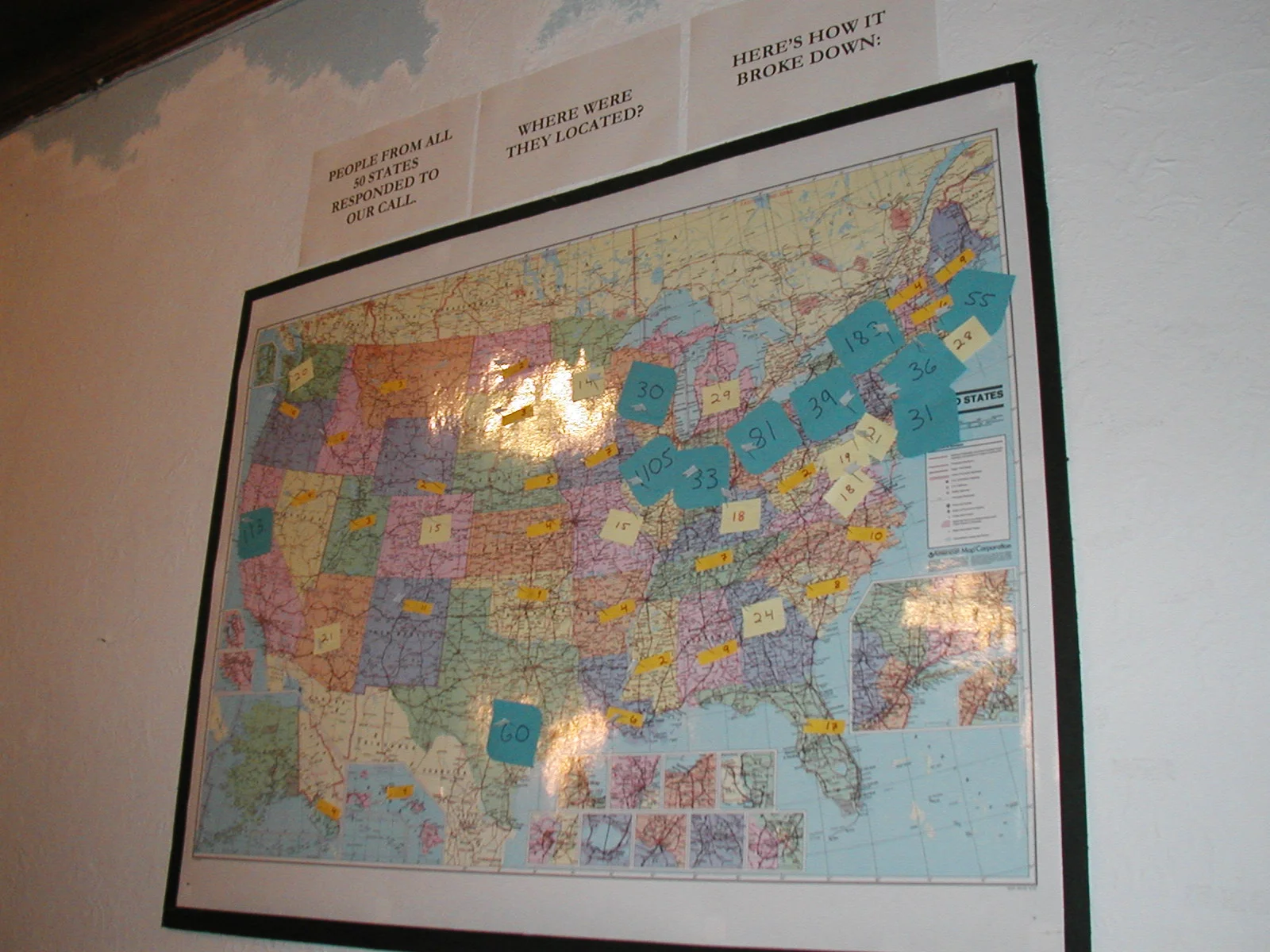 I created a lobby display for You Asked For It! by Greg Allen (dir. Greg Allen) at the Neo-Futurists in 2007. Inspired by a book about what people most and least want to see in paintings, we created and sent out a survey about what audiences most and least want to see on stage. Then we made those plays. For the lobby display, I reflected the survey results back to the audience, filling the room with their responses. One thing is certain: people really hate Cats.